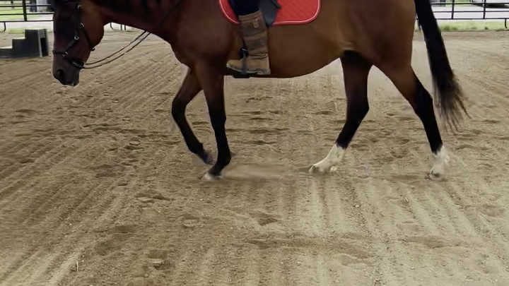 “Dixie” is a smart, athletic off-the-track Thoroughbred (OTTB) with a heart full of potential. Sensitive to a rider’s energy and seat, she responds best to calm, quiet handling and truly shines with consistency. Dixie is an eager-to-please mare who is currently building topline muscle, learning to relax through her body, and developing correct movement.